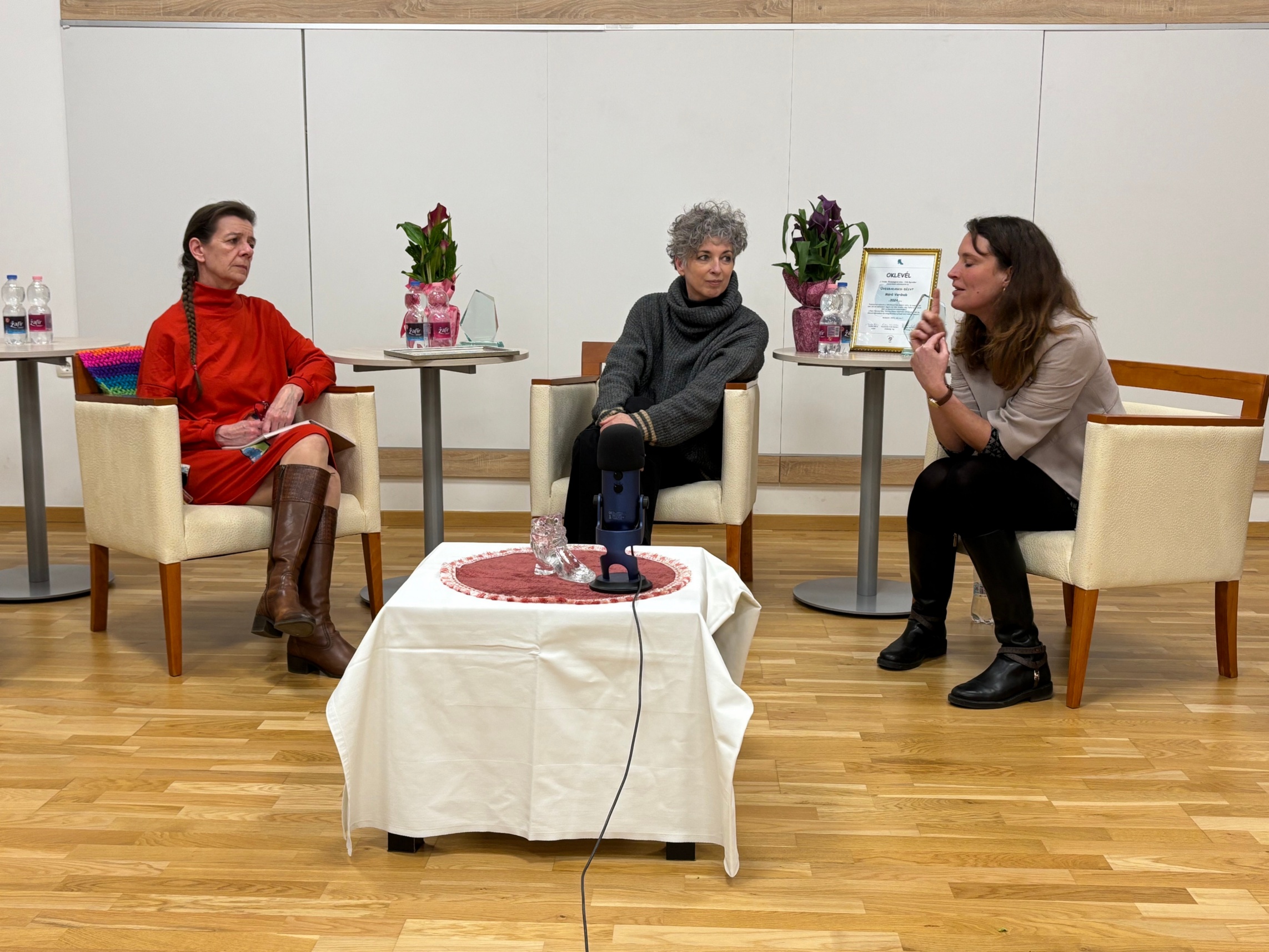Gratulálunk Bódis Krisztának, Mérő Verának és Moskovics Juditnak, akiket 2025. március 7-én, nőnap előestéjén jutalmaztunk az Üvegbakancs-díjjal. Mindhármuk munkáját a gyermekvédelemhez kapcsolódóan méltattuk. A rövid ünnepélyes díjátadót egy nagyon jó hangulatú, közvetlen beszélgetés követett: Egyik tavalyi díjazottunk, Simkó Edit beszélgetett Bódis Krisztával és Mérő Verával. Moskovics Judit sajnos betegség miatt nem tudott részt venni az esten, innen is kívánunk neki jobbulást. Gyógyulása után gondoskodunk a díjátadásról.